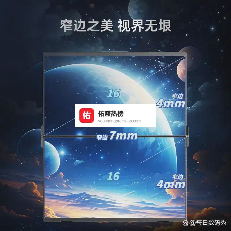 极致的超窄边框设计达到了仅7mm的宽度,将视觉体验推向了新的高度。无论是观看影片还是进行多任务处理,都能让人沉浸于画面之中。更值得一提的是,双屏旋转设计——180°的开合加上调节视角,确保采用人本工学理念,使得使用者在任何姿势下都能获得舒适体验。