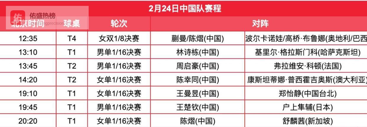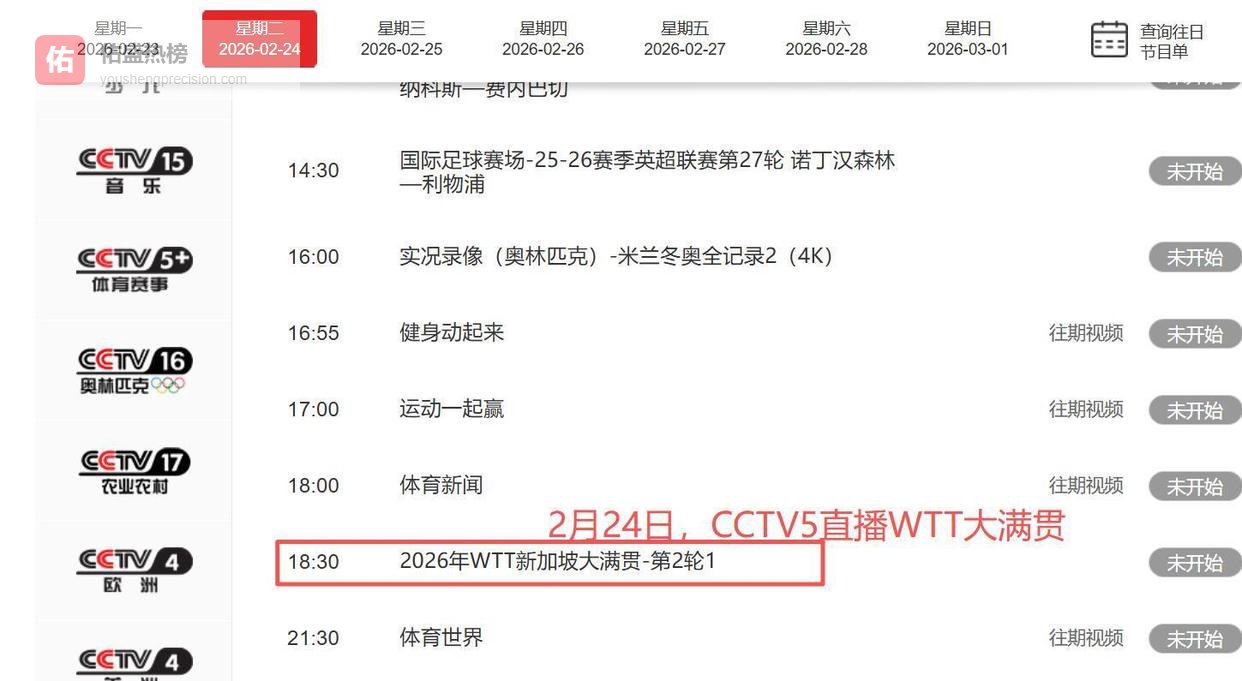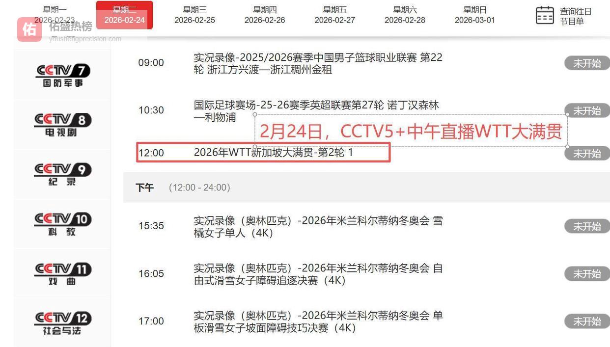 重要变化,2月24日央视直播WTT大满贯调整!王楚钦决战日乒核心
