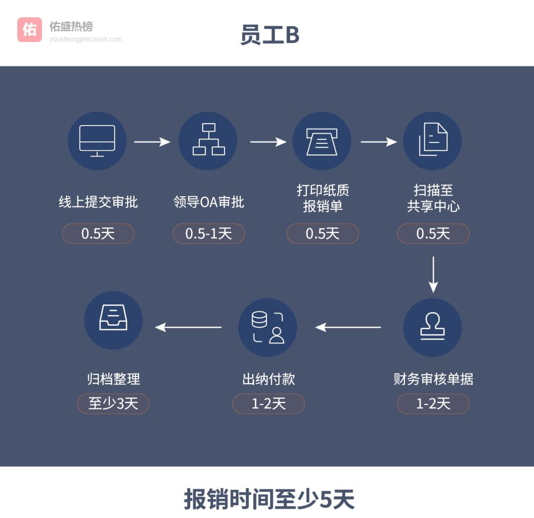 传统报销链路长、节点多,“纸质发票→打印→粘贴→贴票→快递→财务→扫描→OCR→系统”,每多一次人工,就多一分出错概率。第三方调研显示,40.6%的员工对报销周期“极度不满”,填单便捷性、审批时效性、打款速度互相掣肘,形成恶性循环。