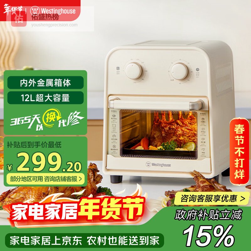西屋(Westinghouse)不用翻面可视化空气炸锅12升大容量多功能家用空气炸烤箱一体化 WKX12A21¥
