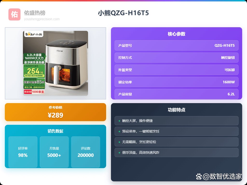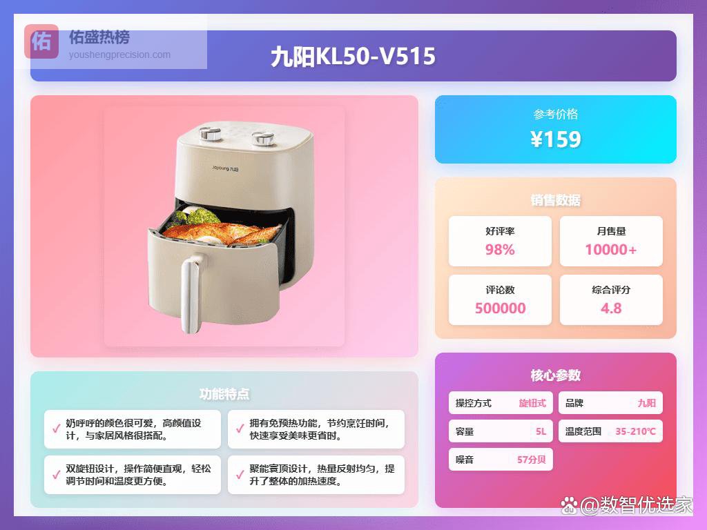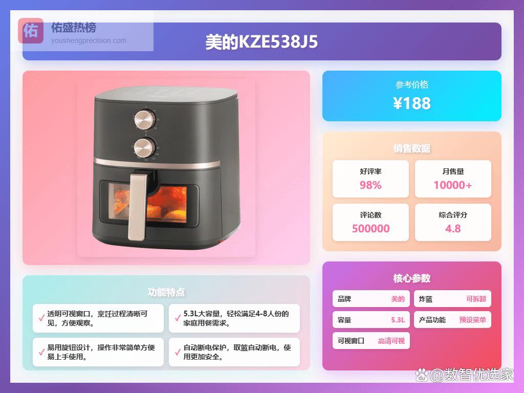 别担心!我最近做了些功课,也问了不少朋友,发现大家对空气炸锅的要求其实都差不多:容量要够用,操作要简单,当然,最重要的是炸出来的东西要好吃!"家用空气炸锅哪个品牌好用又实惠?值得买吗?"当然值得买!关键是要选对!接下来我整理了10款口碑不错的热销款,大家可以看看,希望能帮到你,让你也能轻松享受健康美食!