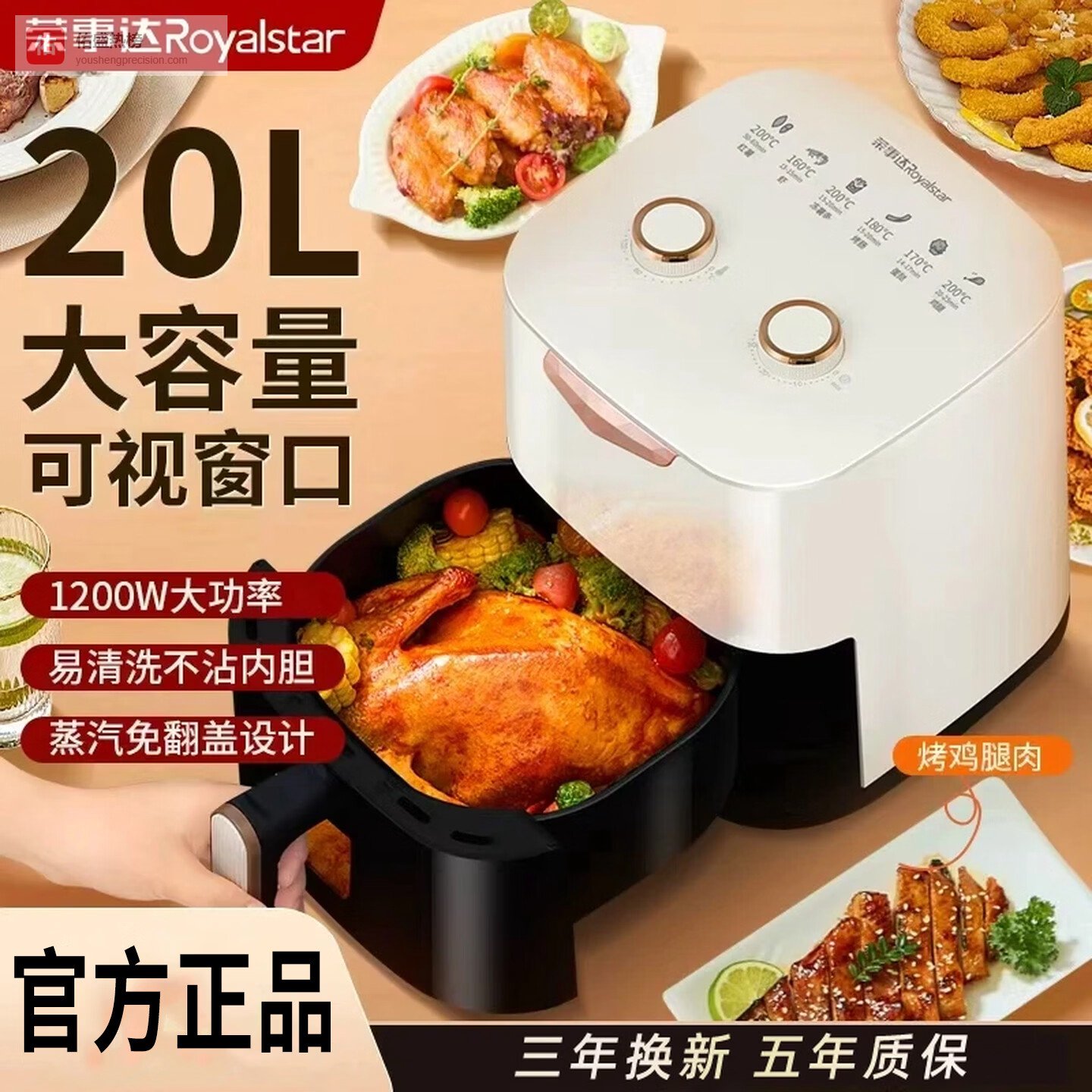 七、荣事达1️⃣ 蒸烤一体功能:这款空气炸锅还集成蒸和烤功能,一机搞定多样烹饪需求,不用换设备就能做出蒸包、烤鸡、焖饭,真的挺方便。无论是炸东西还是蒸点心,都能轻松应付,厨房操作变得更灵活。
