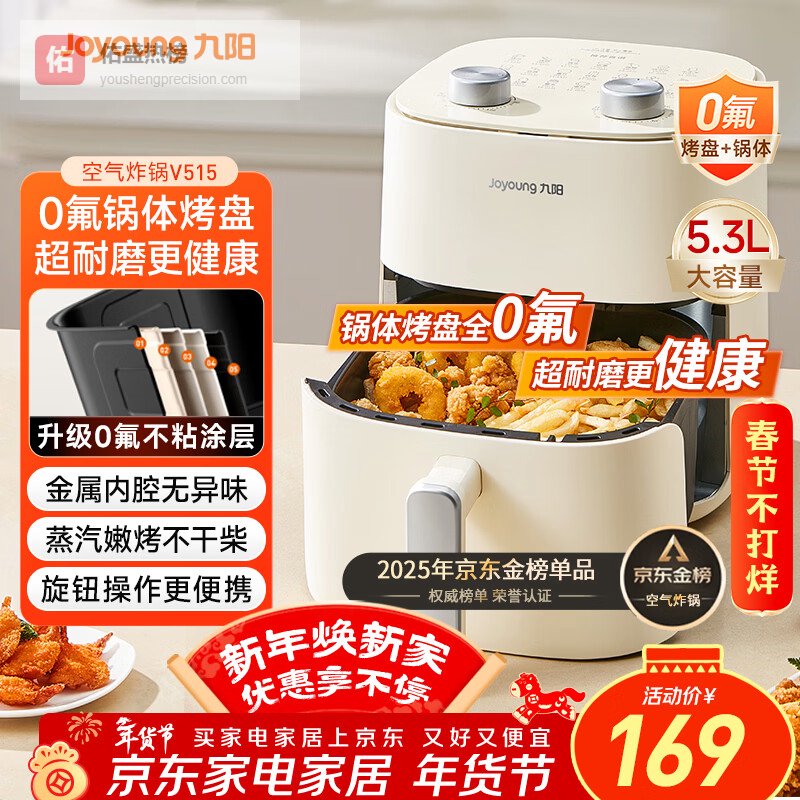 九阳(Joyoung)免翻面高效烘烤蒸汽嫩炸 蒸烤炸一体空气炸锅5.3L大容量家用实用多功能全自动不用翻面 KL50-V515¥