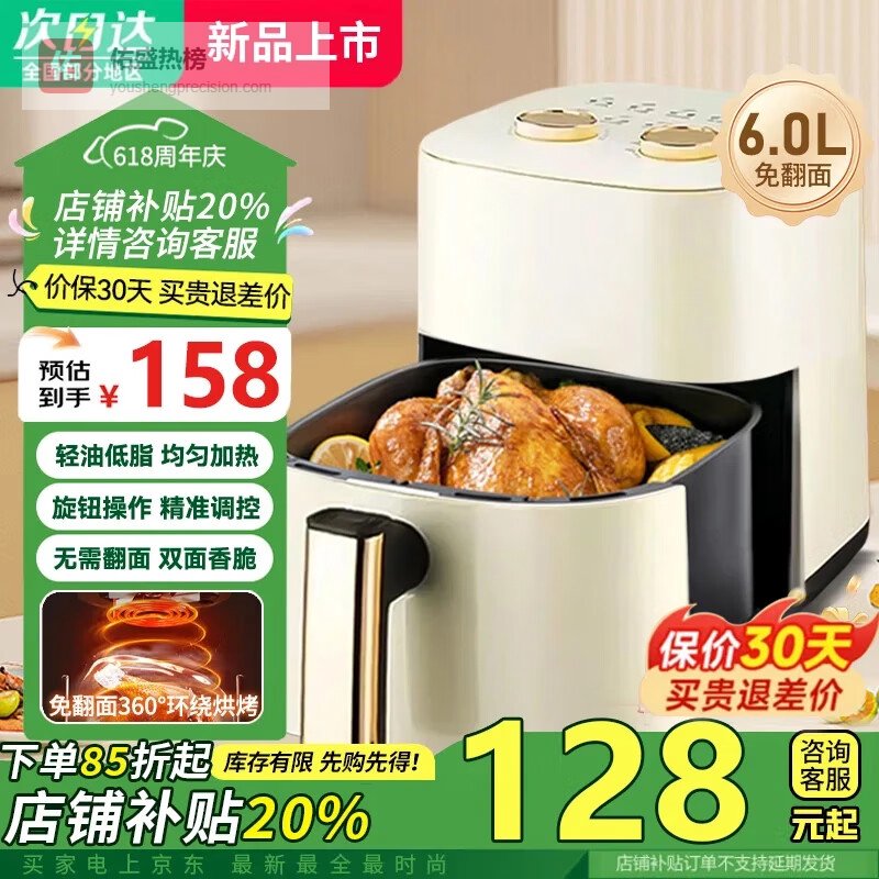 六、美菱1️⃣ 大容量设计:这款空气炸锅容量超过5升,一次可以搞定全家人的份量,无论是炸鸡翅还是烤全鸡,都能轻松应付,朋友来访也不怕吃不完,用起来还挺方便的。