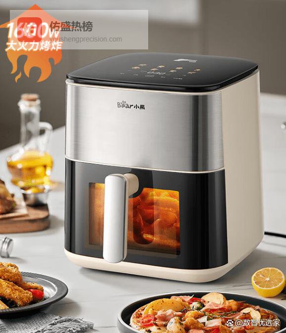 3️⃣ 可视窗口设计:炸锅带有可视观察窗口,随时可以看到食物的烹饪状态,不用开盖就能判断什么时候差不多,避免过度烘烤。而且操作更安心,不用担心食物会糊掉,烤得刚刚好。