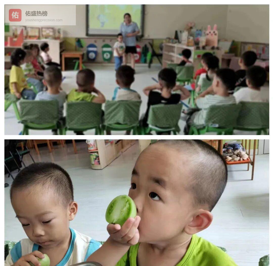 等待的日子漫长,孩子们决定让番茄“加速成熟”。老师把两种番茄——一个红软、一个青硬——摆上桌,用糖拌成两盘“实验餐”。尝过之后,大家异口同声:“红番茄酸甜,青番茄太酸!”