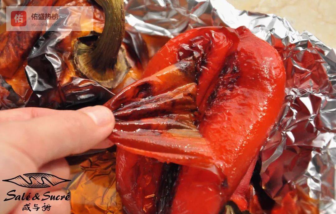 送进烤箱40分钟左右,表皮起皱、颜色发暗即可取出。趁热用锡箔纸或食品袋密封“闷”5分钟,余温会让皮肉分离,稍后剥皮更轻松。
