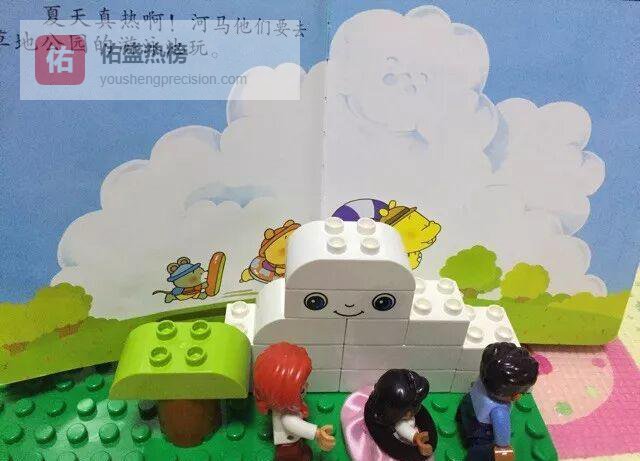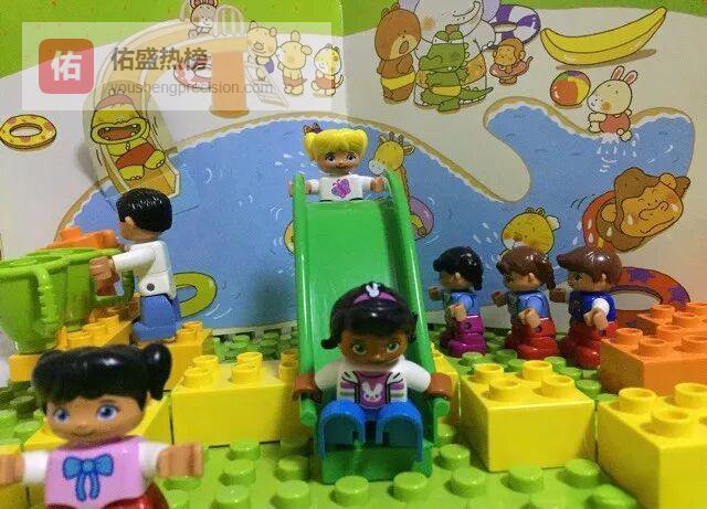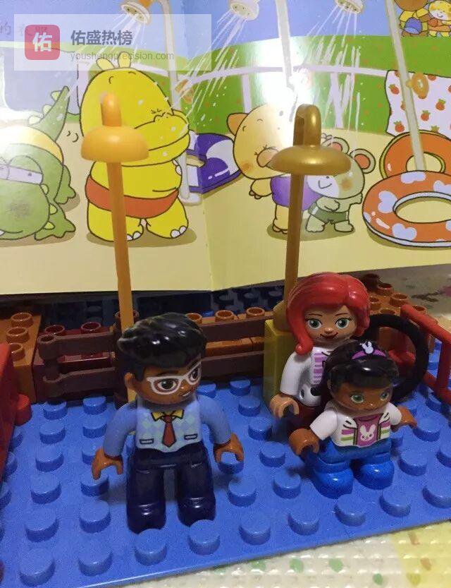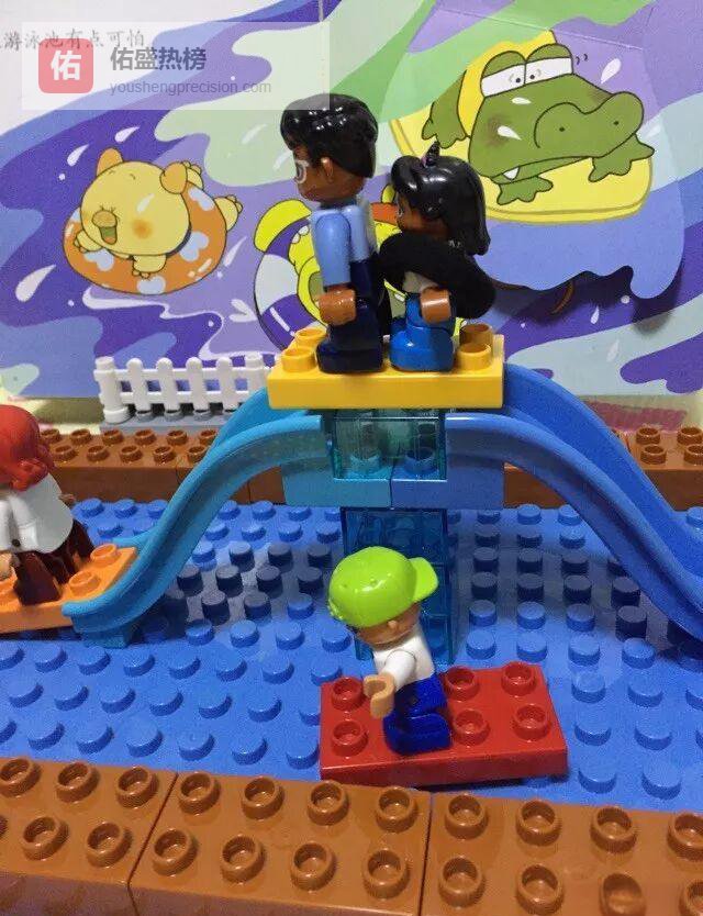 1.1 ► 先搭场景,再选演员女儿已能把书中场景背得滚瓜烂熟,于是我先用得宝颗粒和祖国版散件复刻出比赛池、流动池、滑梯池、波浪池。初次搭建全由我包办,下一次一定让她“执砖上阵”,把主导权交给她。