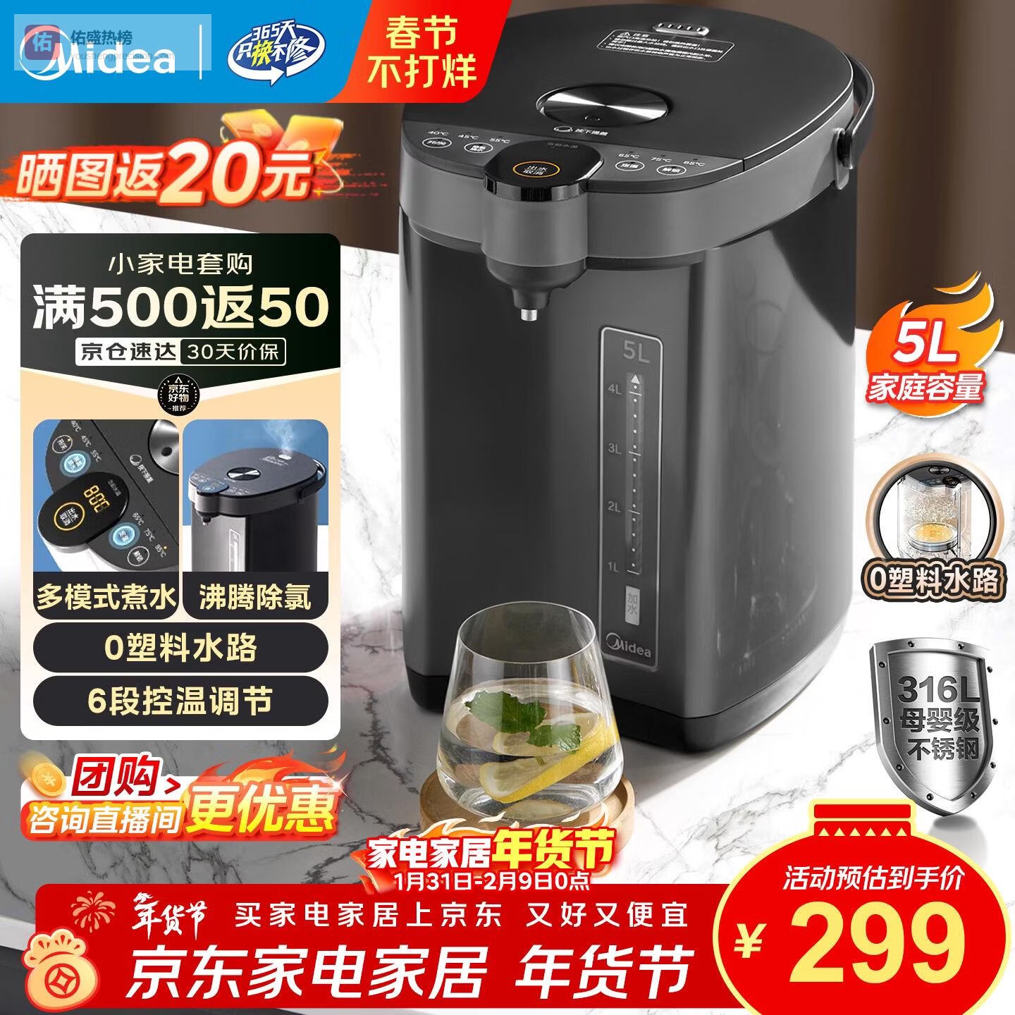 美的(Midea) 电热水瓶 5L升大容量保温除氯电水瓶 家用烧水壶保温一体全自动恒温电热水壶 开水壶 5L 【316L母婴级材质内胆】¥