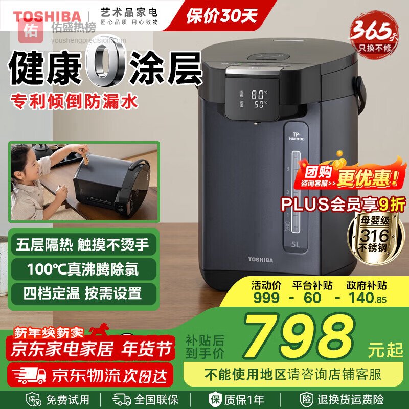 东芝(TOSHIBA)水物语安全电热水瓶不锈钢0涂层电热水壶大容量电热水瓶恒温沸腾除氯烧水壶加大容量多段控温 5L 50DRTC(H)【光感节能】¥