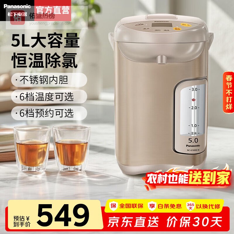 松下(Panasonic)电热水瓶家用烧水壶保温一体开水壶全自动恒温电热水壶智能预约除氯5L大容量EF5000 5L 【一键除氯+预约保温】EF5000¥