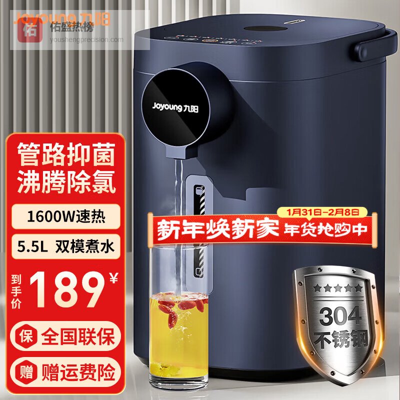 九阳电热水瓶大容量电热水壶防烫控温烧水保温开水机开水煲一体式家用全触控出水饮水机 5.5L 【八段调温/沸腾除氯】蓝¥