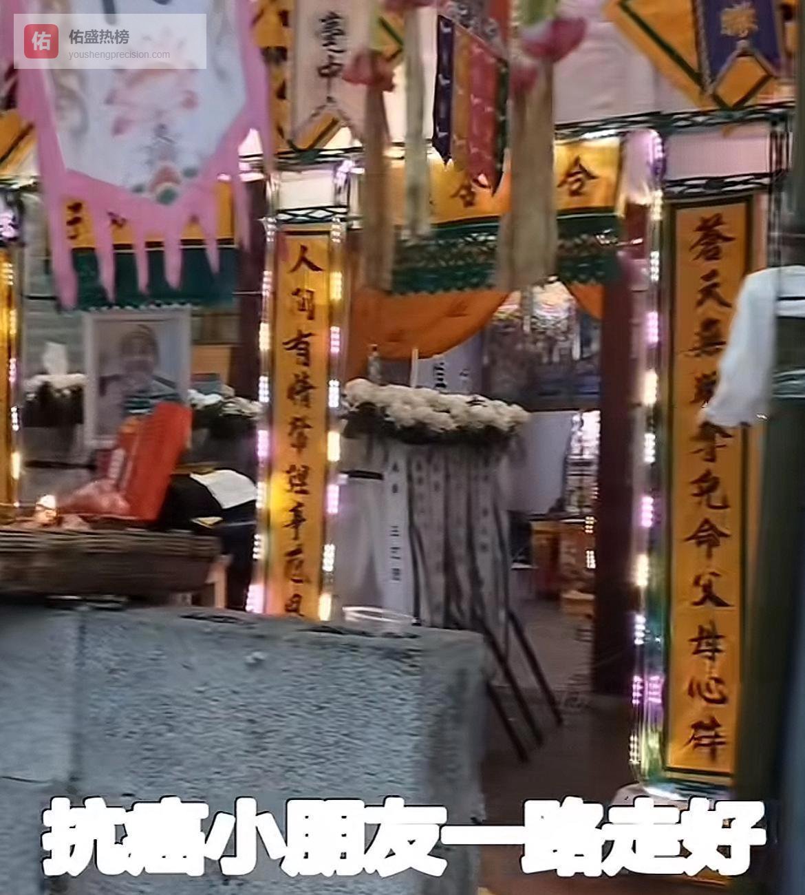 跟成人的灵堂比起来,这样的布置已经算得上“绝佳”了,按地方习俗来看,估计豪豪的父母也是克服了不少困难才布置成这样的。