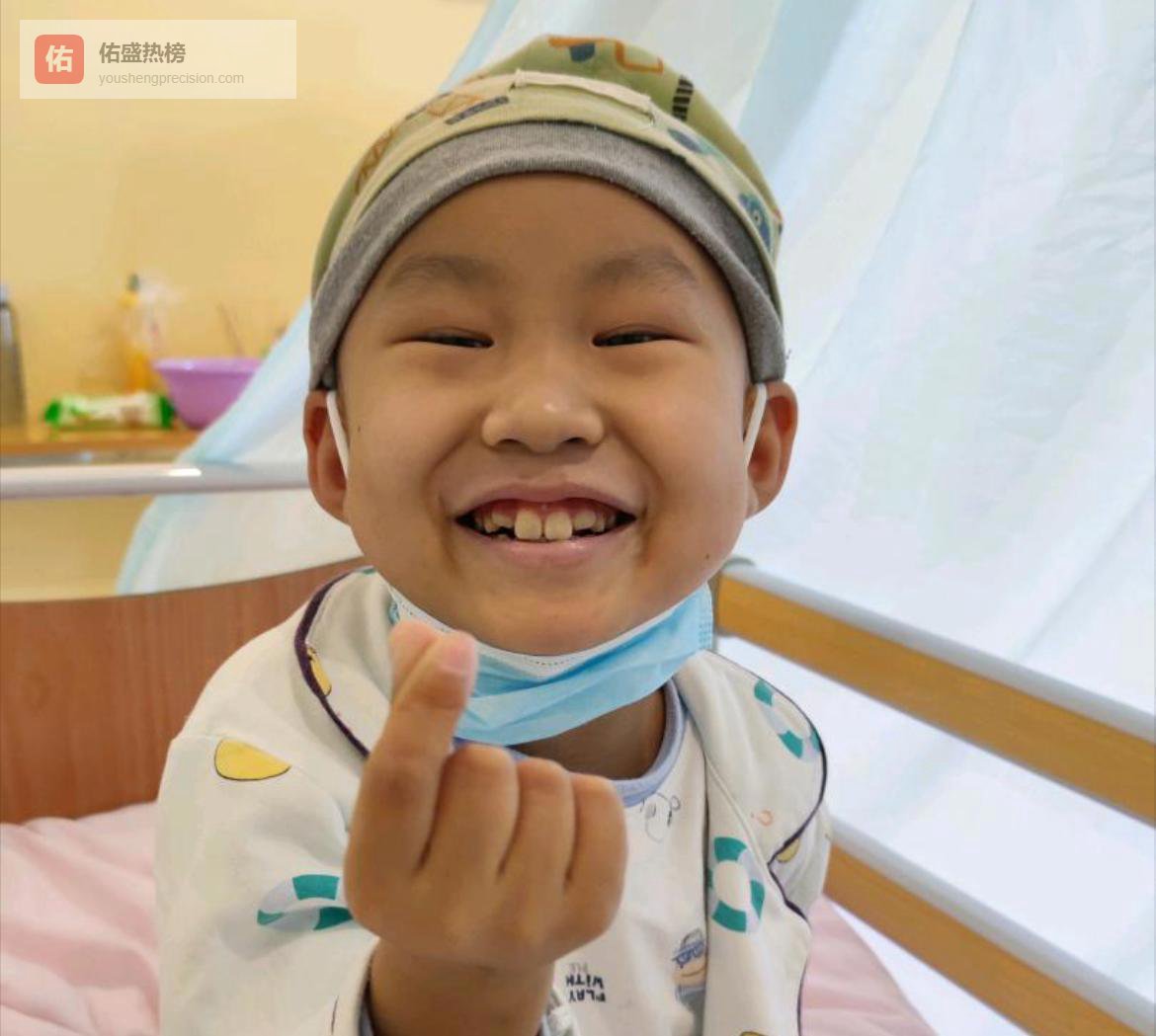 画面里的豪豪穿着睡衣,朝镜头比心,笑得特别甜。这么选这张,估摸着是他那些照片中最“正常”的一张。4岁确诊后,接下来就是没完没了的放化疗,他的身体早就被折腾得没剩几块肉(看得出一只眼睛不好,面颊也发福),也只有这张,看着还能接受。
