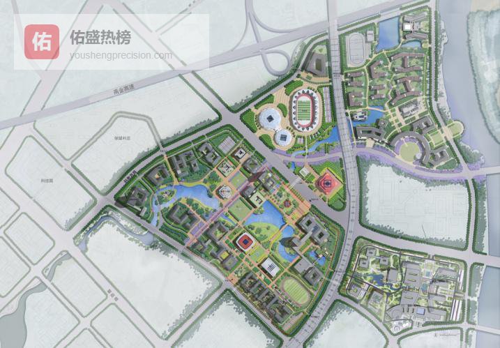 项目选址义乌双江湖新区科教园区,甬金高速、城市快速路与规划轨道线三线环绕,出门即景,转身即达。一期占地565亩,总建筑面积约40.5万㎡,“无围墙”设计先行,校园与城市共享生态、共享未来。