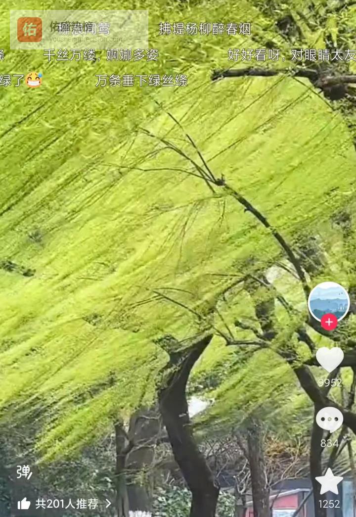 别光顾着赏花。这个时候,生出新绿的垂柳也开始成为“顶流”。
