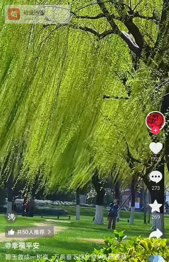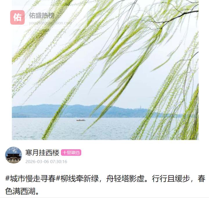 在社交平台,不少网友分享了西湖垂柳的绝美视频和照片——黄绿色的嫩柳柔顺地垂于水波之上,随风摆动,犹如一个个舞者在扭动身姿。