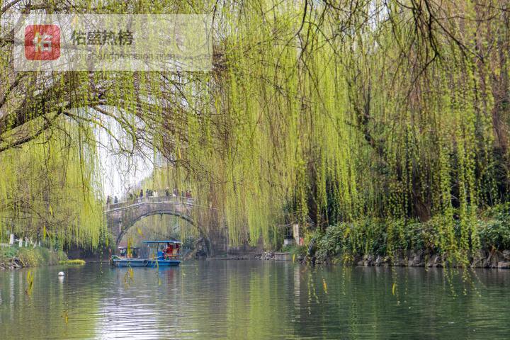杭州水系繁多,这个时候,随处可见嫩绿轻柔的柳枝在水畔飘摇。