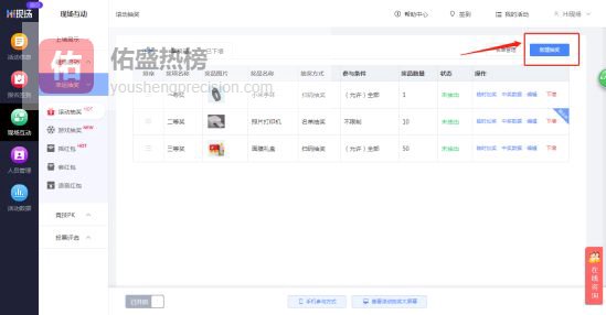 添加奖项设置(奖项名称、奖品名称、奖品数量、兑奖方式等)