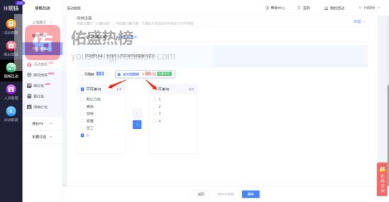 本轮抽奖,如需限定仅允许或禁止部分人员参与抽奖,可开通参与条件限制,进行设置: