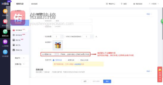 抽奖环节默认不可以重复中奖,如开启“允许重复中奖”则有机会再次参与抽奖