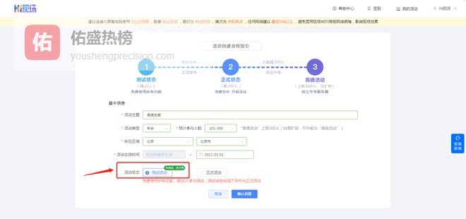按照流程指引,创建新活动