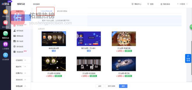 Hi现场提供多种抽奖主题,主办方可任意选用(如有标价,则需付费使用)
