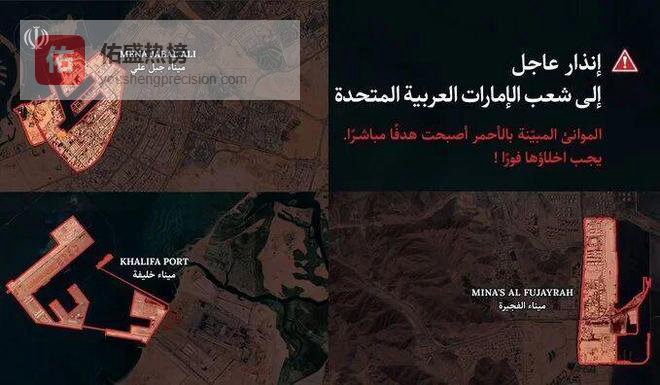 凡是还停留在阿联酋地图上标示区域的居民和游客必须立即离开杰贝阿里港、哈利法港和富查伊拉港附近区域。