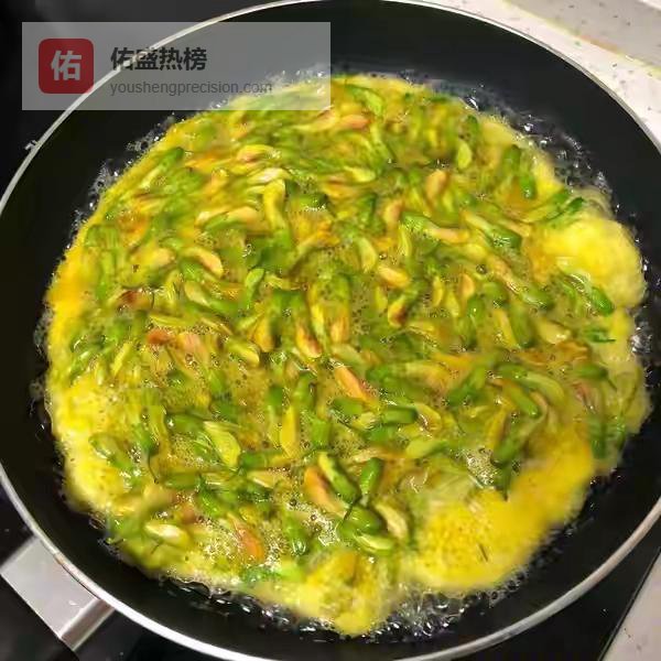 核桃花一串串毛茸茸的,形似“小尾巴”,有些地方叫它“龙须菜”。去掉外层颗粒状花蕾,留下中间的花茎,焯水后再浸泡一下,就可以凉拌、清炒或做馅,口感独特,也很下饭。