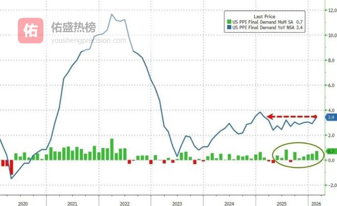 更关键的是PPI 是美联储核心关注的核心 PCE 通胀指标的重要先行指标,当前输入价格涨速快于输出价格,企业利润空间持续承压,意味着上游成本压力尚未充分向终端消费价格传导,后续核心 PCE 超预期上行的风险大幅加剧。