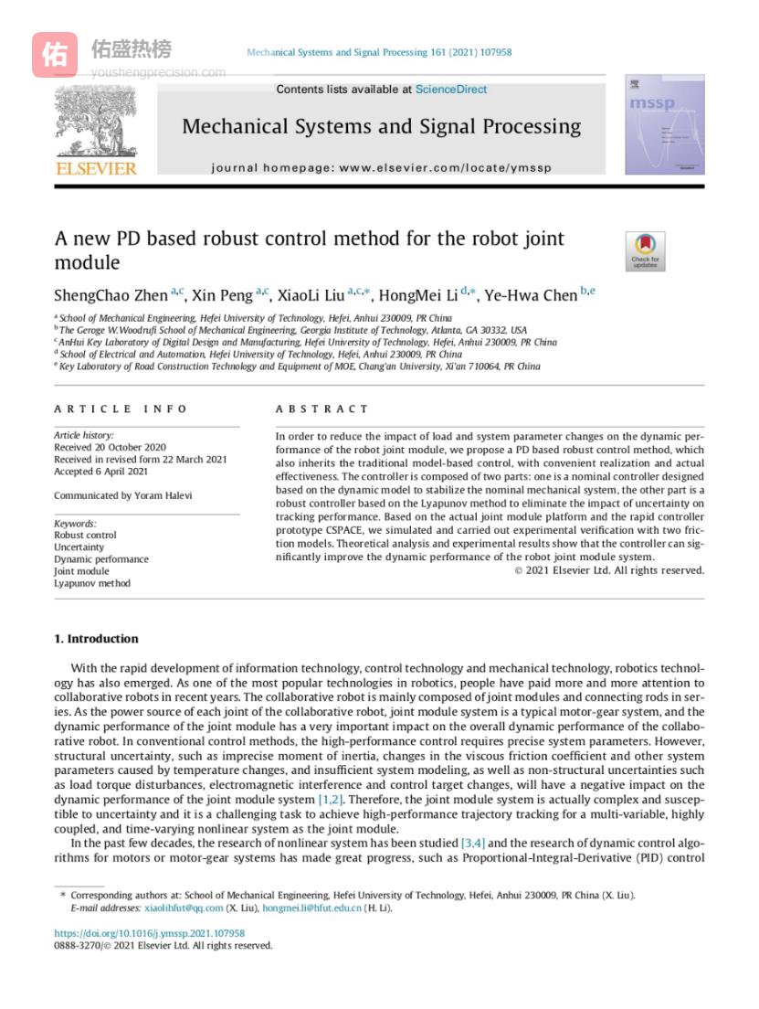 6.2 ▲ 期刊论文示例2 论文名称:A new PD based robust control method for the robot joint module