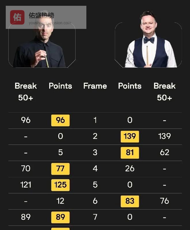 参考资料:体坛周报《斯诺克玉山公开赛1/8决赛战报》