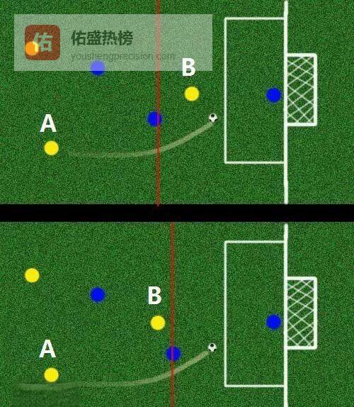 下图:球员A传球瞬间,球员B不处于越位位置。