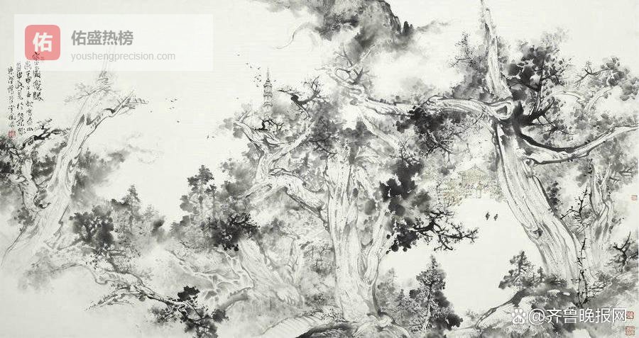 山水有灵,亦待知音。灵岩寺的雄奇与雅致、庄严与清幽,吸引着无数艺术家为之驻足挥毫。著名画家金树湧,便沉醉于灵岩寺的千年胜境与人文气韵,潜心观察,精心构思,以笔墨为媒,以山水为魂,创作出了经典作品《灵岩揽胜图》。