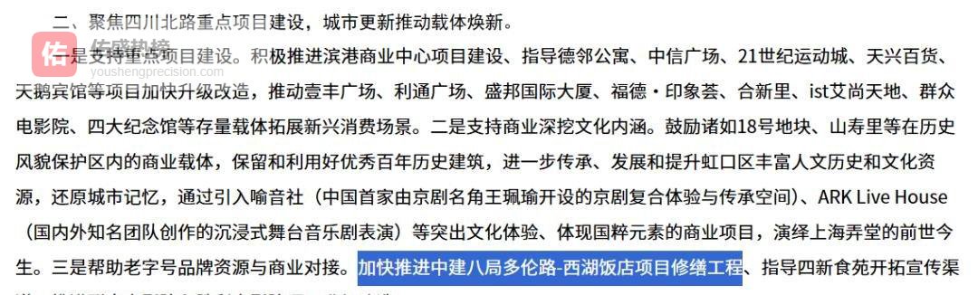 其中指出:“要促成老字号品牌与商业资源的合作。加速中建八局负责的多伦路-西湖饭店项目的修缮进度,协助四新食苑拓宽宣传途径,并推动群众电影院和胜利电影院的升级与改造工作。”