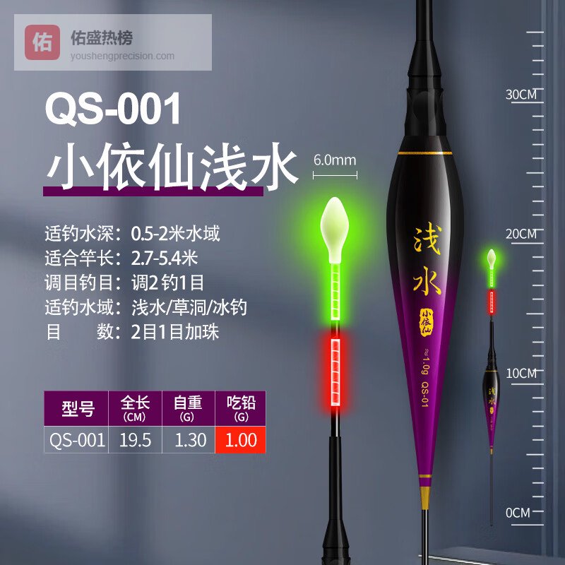 2️⃣ 浅水特调版 吃铅2.5g专攻1-2米浅水区,漂尾加粗设计,夜钓再也不怕眼花