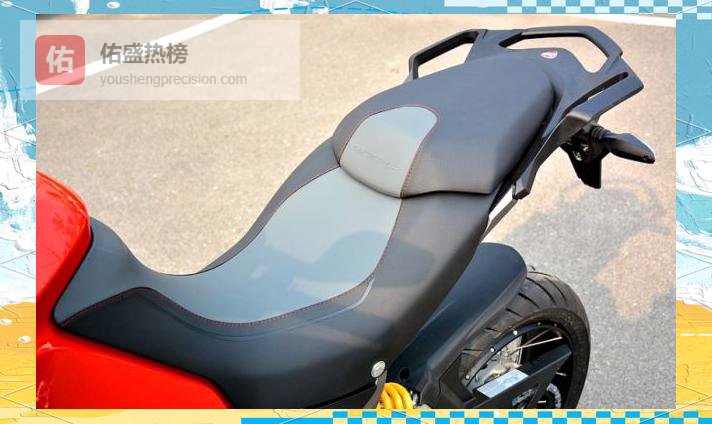 第一眼望去,“鸟嘴”前脸像一把出鞘的匕首,铝合金护板让整车的硬朗度直接拉满;矩阵式LED大灯藏在里面,远近光与弯道辅助灯分体布局,夜里拐个弯都能亮瞎后车远光狗。侧箱导流罩一体成型,ADV气息扑面而来,却又不失杜卡迪特有的战斗姿态。