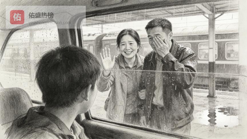 父母站在月台上,隔着模糊的车窗向我挥手。