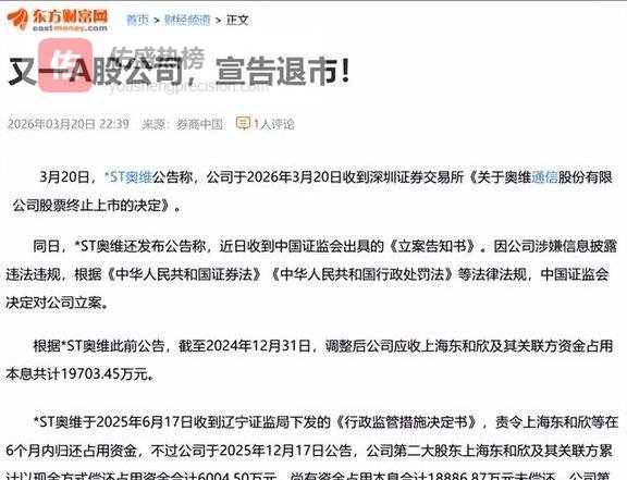 亏266亿!_ST奥维踩中5亿市值红线,退市立案同日落地!