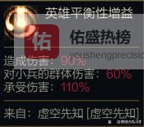 蚂蚱海克斯大乱斗有“造成伤害 -10%、承受伤害 +10%、对小兵群体伤害 -40%”的debuff。