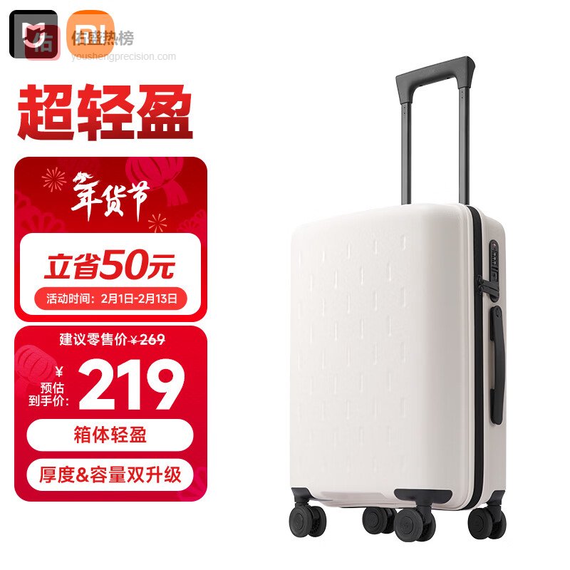【京东自营】米家小米行李箱20英寸拉杆箱可登机箱万向轮旅行箱男女小型密码箱白色¥