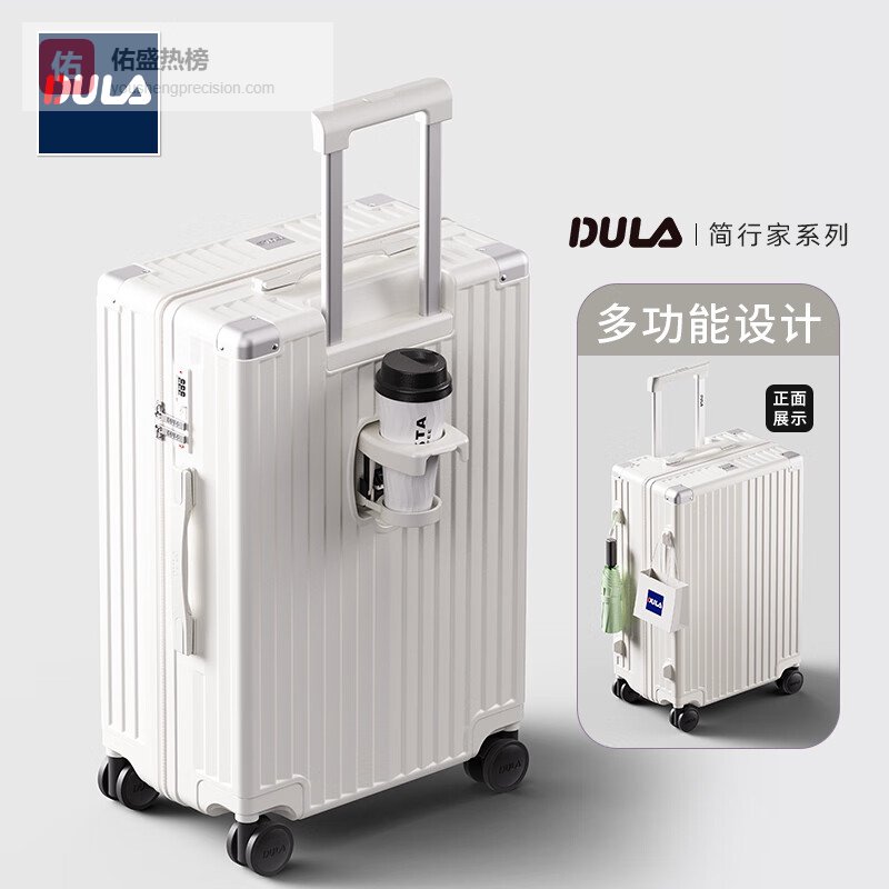 【京东自营】DULA高颜值带杯架行李箱拉杆箱旅行箱小型登机箱密码箱子皓月白20英寸¥
