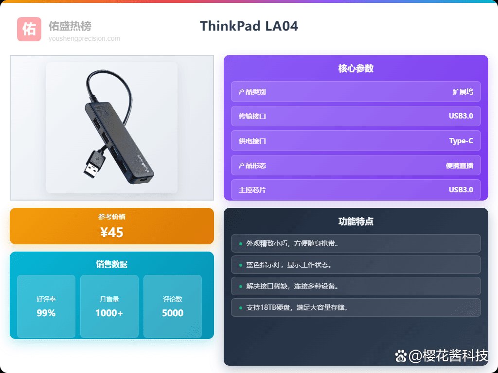 2026年ThinkPad USB分线器选购攻略:精选6款扩展坞,认准这几款就对了1、ThinkPad LA04