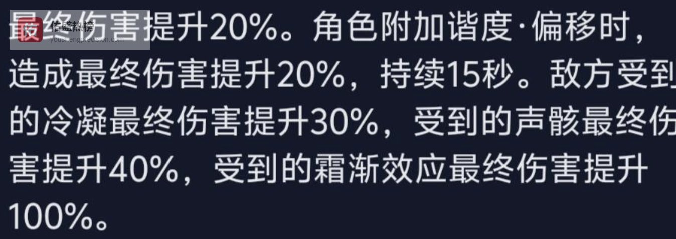 值得一提的是,就最新消息,3.3深塔上半的环境也来了,如图所示,就BUFF来看,应该是让西格莉卡和绯雪都能吃buff,后续还是会在抬一手西格莉卡的,应该不是专属BUFF,就是让之前UP的角色也能吃到,声骸是给西格莉卡吃的,绯雪大概率是还是之前提到的霜渐效应大C,感兴趣的漂泊者们可以期待一波。
