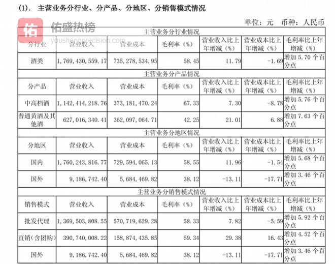 会稽山表示,公司主要产品为黄酒瓶装酒,按出厂价分为中高档黄酒、普通黄酒。其他酒是指爽酒、公司利用黄酒酒糟生产和销售的少量糟烧白酒等。这意味着,会稽山此前推出的年轻化产品气泡黄酒在去年有着不错的销售表现。