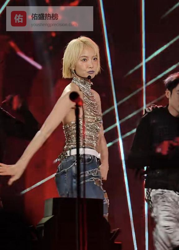 这一身穿搭,应该是为了配合她要唱的歌,毕竟《屋顶着火》那首歌节奏挺燃的。