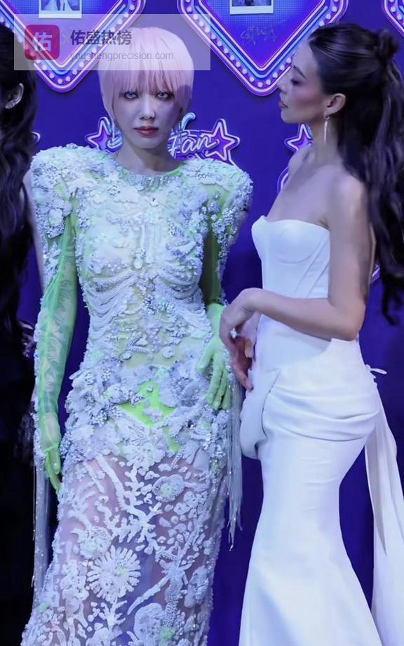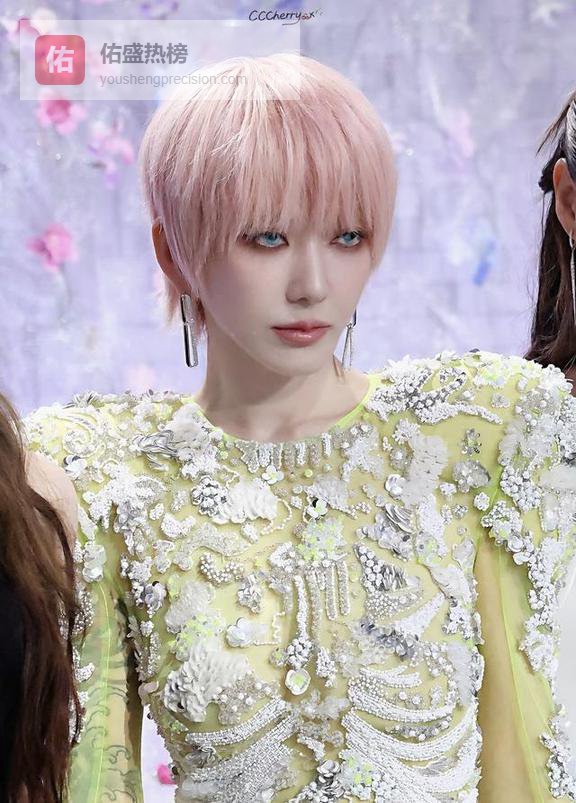 刘忻这次的造型更是让人没想到,粉色的短发配着绿色的亮片裙。