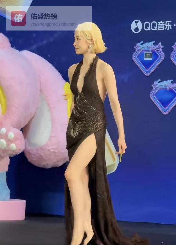 她穿了一件V领的深黑色开叉长裙,后背还是个大露背设计。远远瞅过去,感觉裙子布料没多少,露出来的皮肤可不少!
