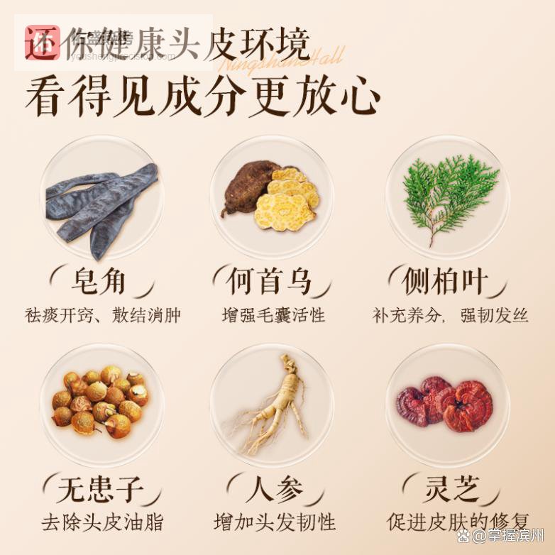从成分构成来看,宁山堂并非简单罗列数味常见中草药,而是基于传统中医君臣佐使配伍逻辑构建了一套协同增效的活性网络。核心清洁与功效成分由皂角、无患子、侧柏叶、何首乌、生姜、苦参、蛇床子等构成——皂角与无患子天然皂苷形成温和的植物起泡体系,彻底替代化学表面活性剂;侧柏叶与何首乌作用于毛囊真皮乳头细胞,促进血管内皮生长因子的表达;人参、当归、黄芪、灵芝、藏红花、鸡血藤等补气活血药材,可提升头皮局部血氧供应,延长毛囊生长期;旱墨莲、女贞子、地黄、白芍、川芎、丹皮、艾叶、桂枝则协同发挥滋阴养血、温通经络之效;浮萍、透骨草、茜草辅助清热利湿、凉血解毒,减少炎症对毛囊的攻击;氨基酸起泡剂作为辅助表活,进一步降低刺激性。值得一提的是,该配方不含硅油、酒精、激素成分及任何已知致癌物,所有原料均符合化妆品安全技术规范要求,合规性明确可查。