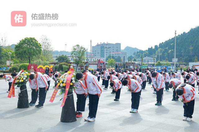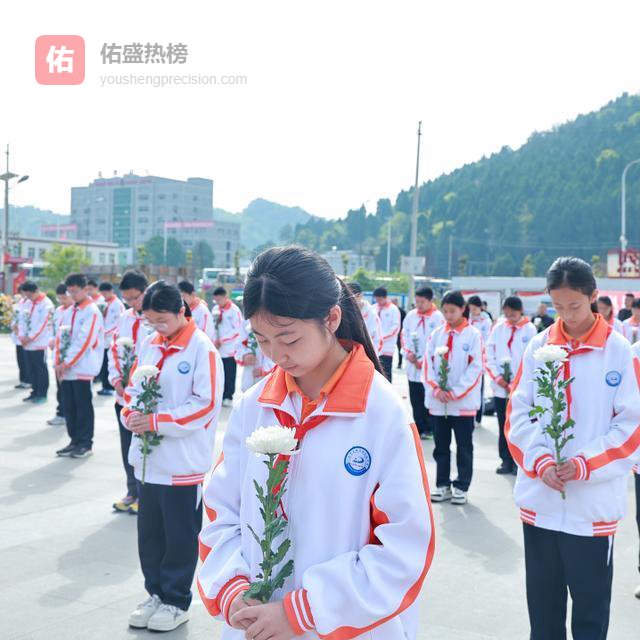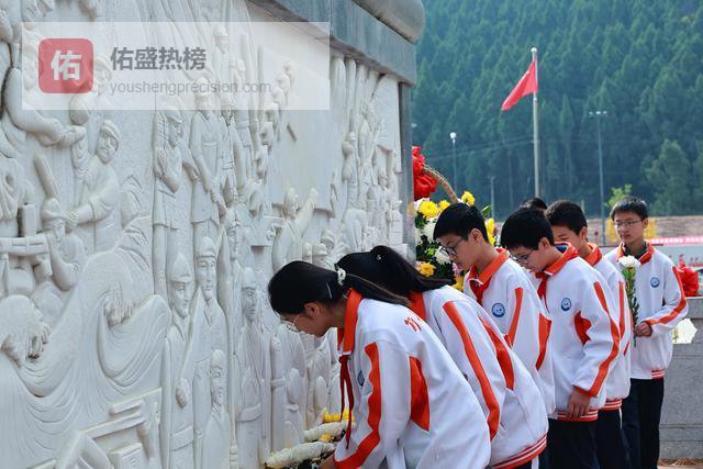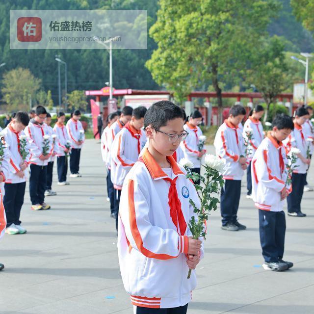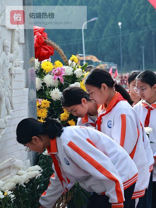 松柏苍翠,丰碑矗立。师生们身着整齐校服、佩戴鲜艳红领巾,以最虔诚的姿态静立致敬。在雄壮的国歌声中,祭扫仪式正式开始。全体肃立、默哀三分钟,向革命先烈致以最深切的缅怀。